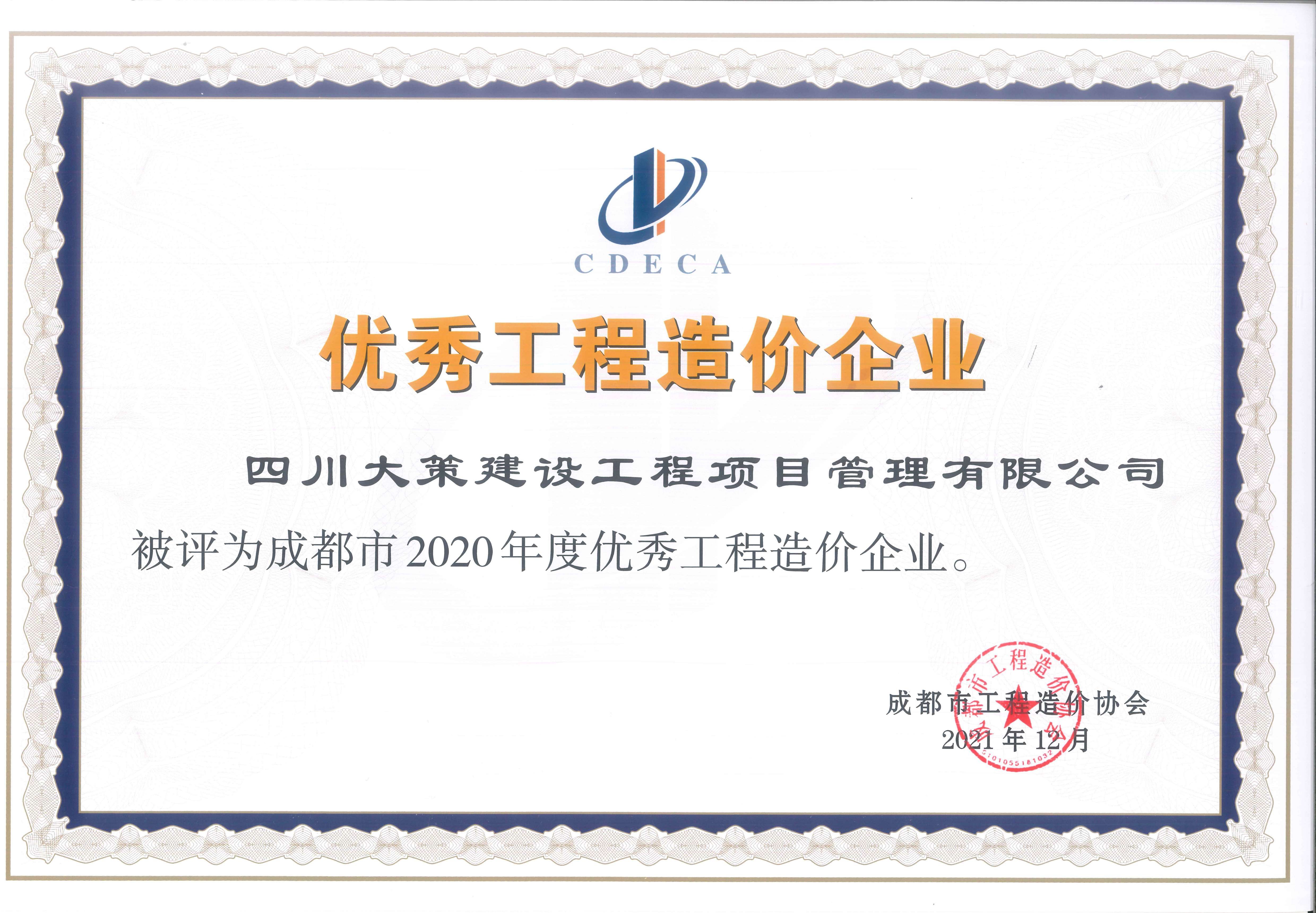 • 2020年度優(yōu)秀工程造價咨詢企業(yè)